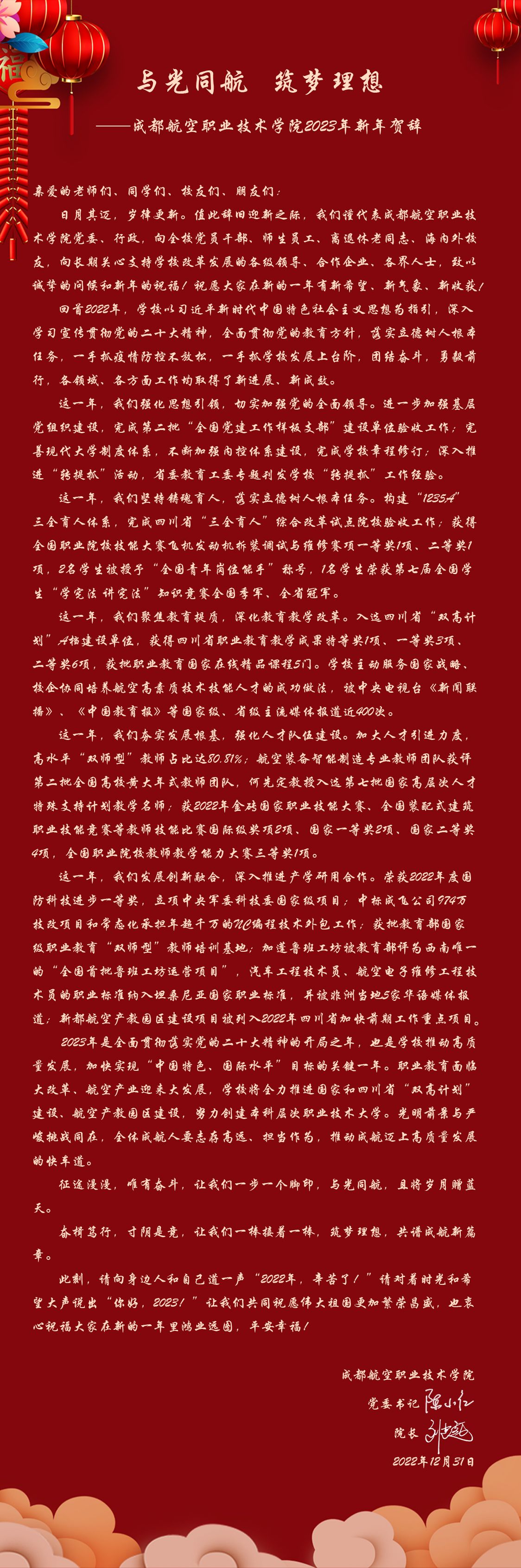 与光同航 筑梦理想——成都航空职业技术学院2023年新年贺辞