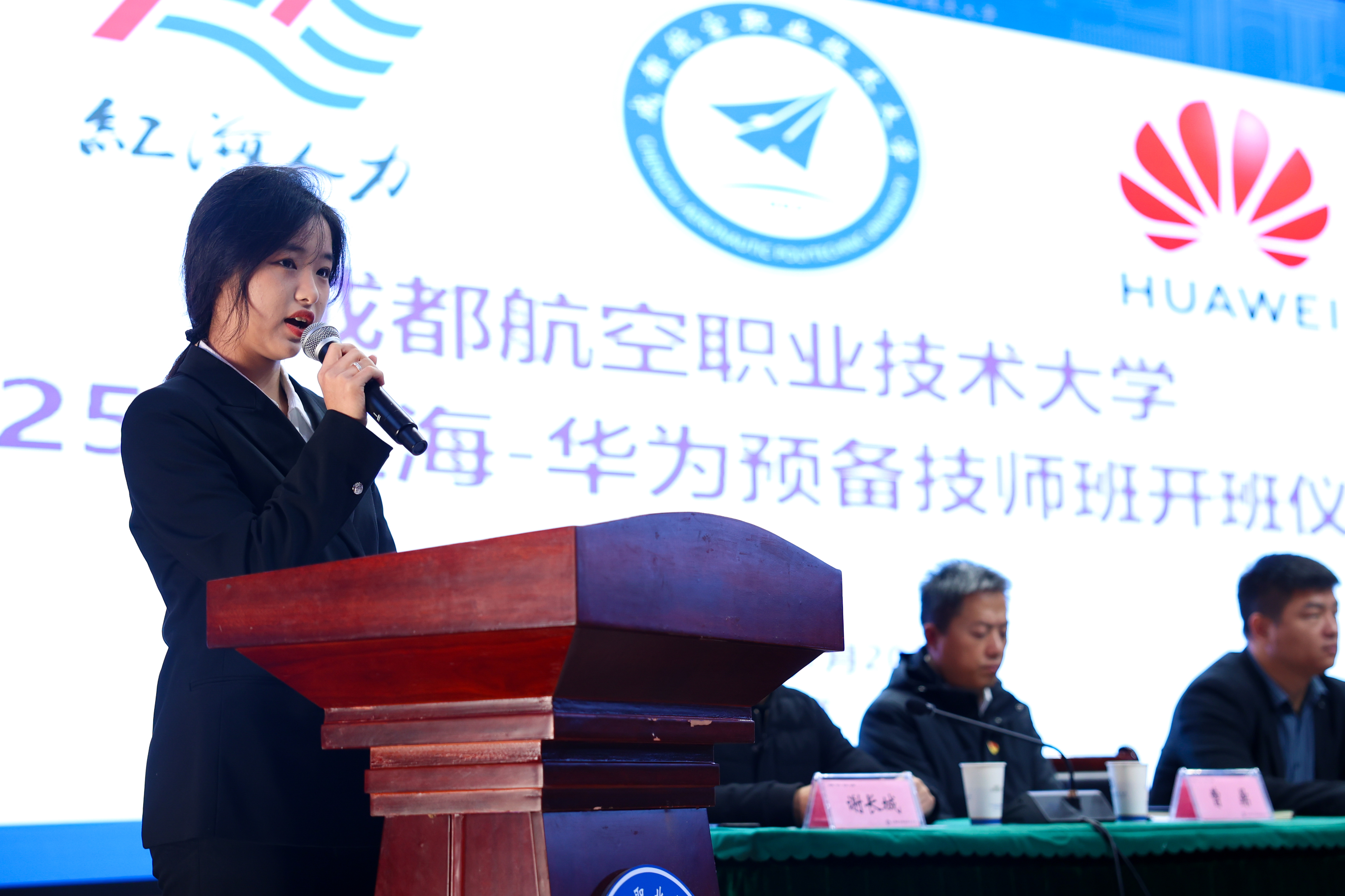 2025年11月20日,成都航空职业技术大学在图书馆明德报告厅举行了2025级红海-华为预备技师班开班仪式。副校长许丽佳、华为机器有限公司无线制造管理部HRBP夏部长、深圳红海人力资源有限公司副总经理黄嘉敏等领导出席活动,电子工程学院与机器人学院2025级共计151名订单班学员参加了仪式。仪式由学校招就处(校企合作办)就业工作负责人谢长城主持。