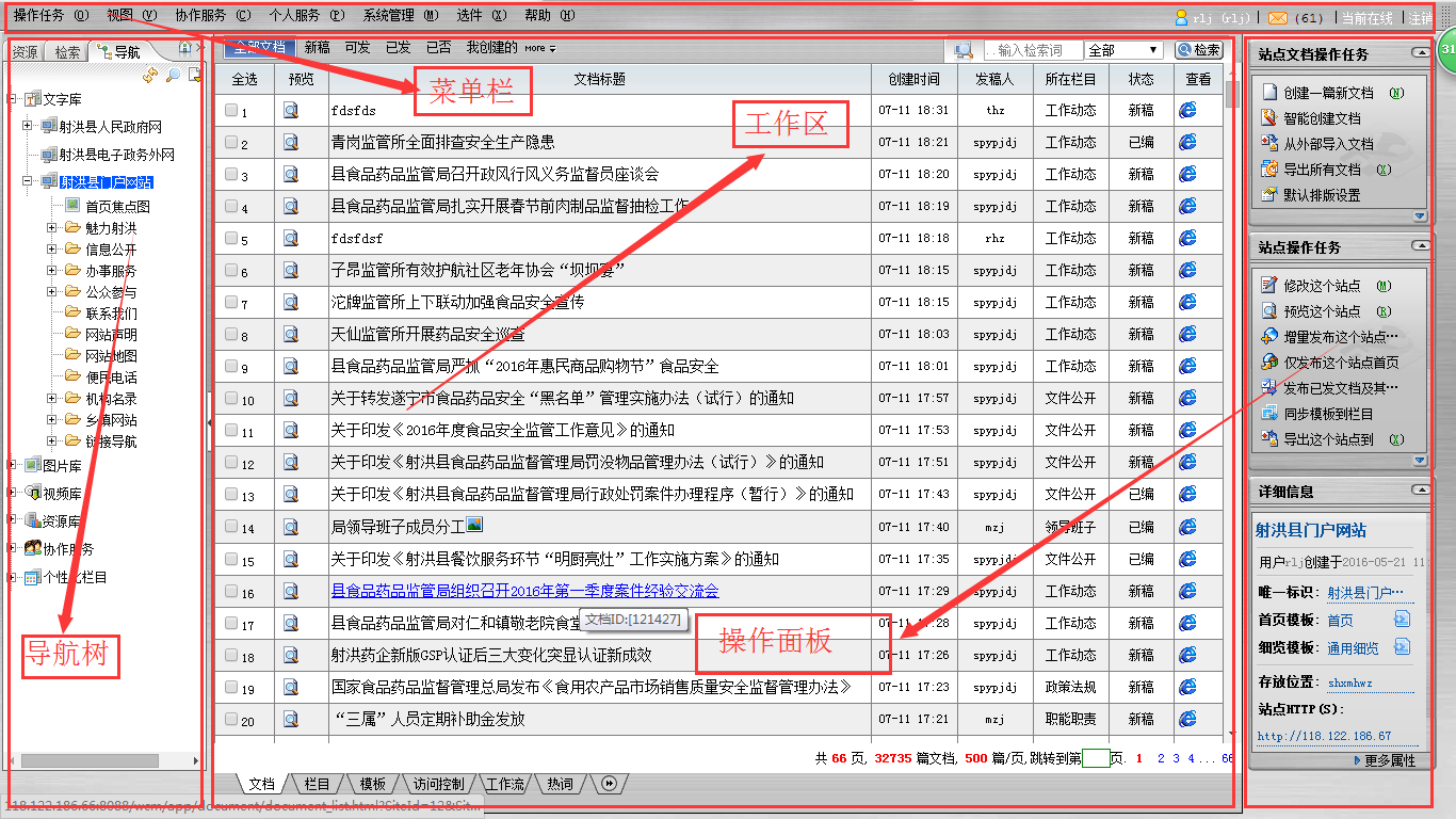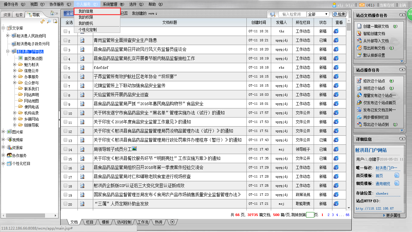 2、通过栏目的增量发布、完全发布,可发布栏目内文档如下图: