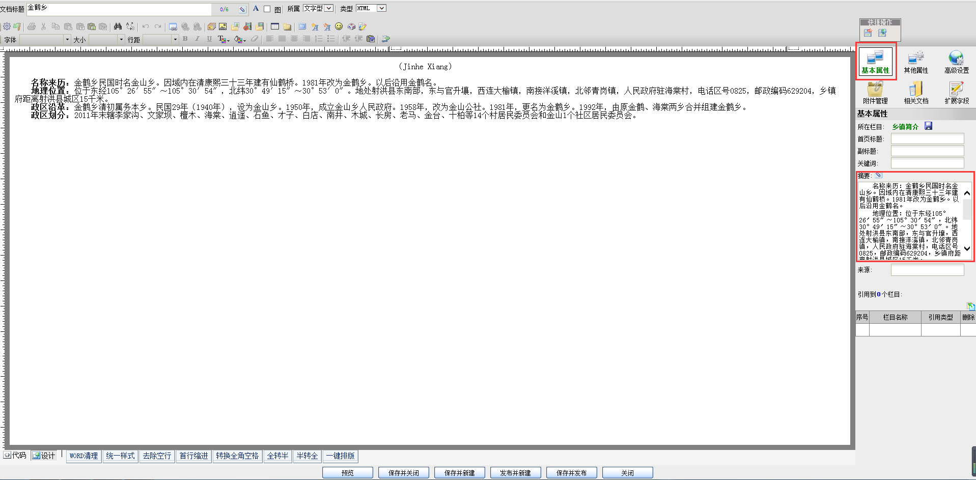 点击 “预览”将弹出预览页面。点击 “存草稿”文档将作为草稿保存。点击“保存并新建”将保存当前文档并新建一篇文档。点击“保存并关闭”将保存文档并关闭当前页。点击 “关闭”将关闭页面。
