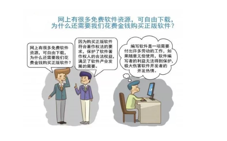 ★这里所说的正版软件,即包括外国软件,也包括国产软件。软件终端用户,特别是企业终端用户需要更换何种软件,由用户自己决定。某些外国软件企业错误地认为,终端用户原来非法安装了什么公司的产品,就一定要购买同一公司的正版产品,否则,即使安装了其他公司的软件,特别是国产软件,也不算正版化。这种认识误导部分企业,甚至执法部门,但是没有任何根据。