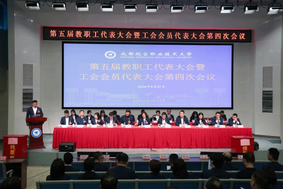 3月31日下午,成都航空职业技术大学(以下简称“成航”)第五届教职工代表暨工会会员代表大会第四次会议在学校博学楼笃行报告厅召开。与会代表齐聚一堂,凝心聚力,共同谋划学校发展蓝图。经过代表们积极讨论和认真审议,大会完成各项议程和任务。学校党委书记陈小红,校长侯孟书,党委副书记、纪委书记徐林,党委副书记谢亮冯,副校长熊熙,副校长许丽佳,副校长许源源,以及学校各单位(部门)的150名代表、58名列席代表和特邀代表参加会议。